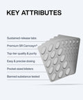 6d hun hoogwaardige SR CarnoSyn®-tabletten bevatten een gepatenteerde vertraagde-afgifteformule van bèta-alanine. Aangetoond als de meest effectieve manier om de buffercapaciteit van je spieren te vergroten en verzuring uit te stellen, zodat je maximaal kunt blijven presteren tijdens aanhoudende intensieve inspanningen (1–8 min) en herhaalde sprints.