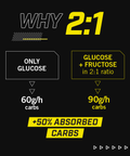 • Optimal Carbohydrate Ratio: 2:1 glucose-fructose ratio for maximum carbohydrate absorption (up to 90g carbohydrates per hour)