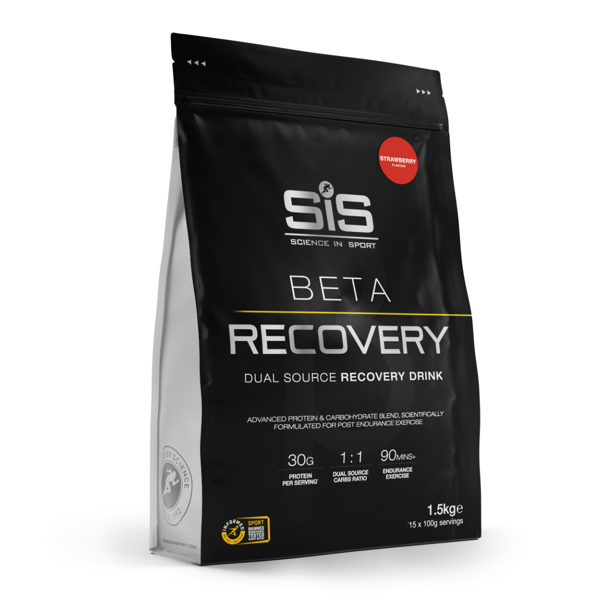 BETA Recovery est scientifiquement formulé, avec un mélange de glucides à double source qui contient 60 g de glucides [avec un rapport 1:1 de maltodextrine et de fructose] et 30 g de protéines de lactosérum par portion.