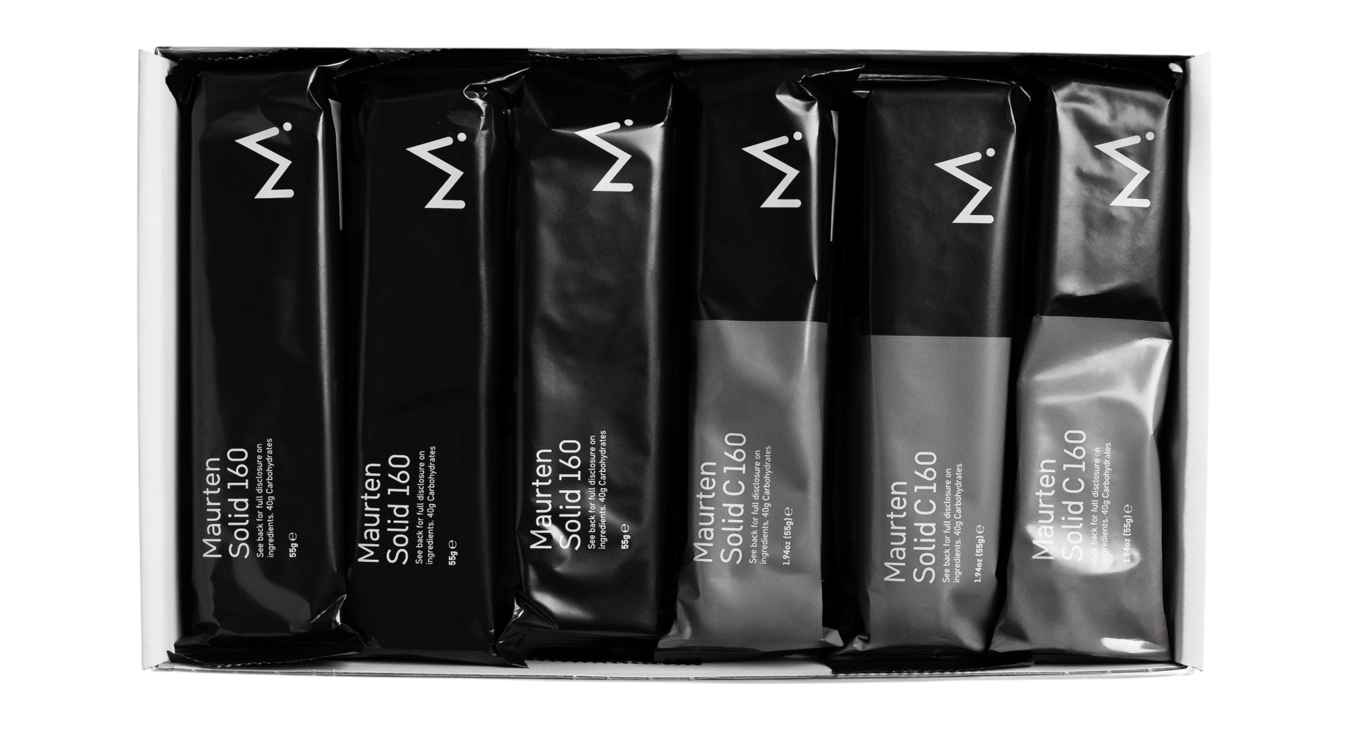 Dit is een Mixdoos Solid 160 - 6x Solid 160, 6x Solid C 160. Maurten Solid 160 is een tweedelige kauwbare brandstof op basis van haver en rijst. 40 gram koolhydraten verdeeld over gelijke porties van 20 gram voor optimale brandstofvoorziening. Beide opties van de snelle, lichte, vezelarme en koolhydraatrijke Solid 160 brandstof in één doos.