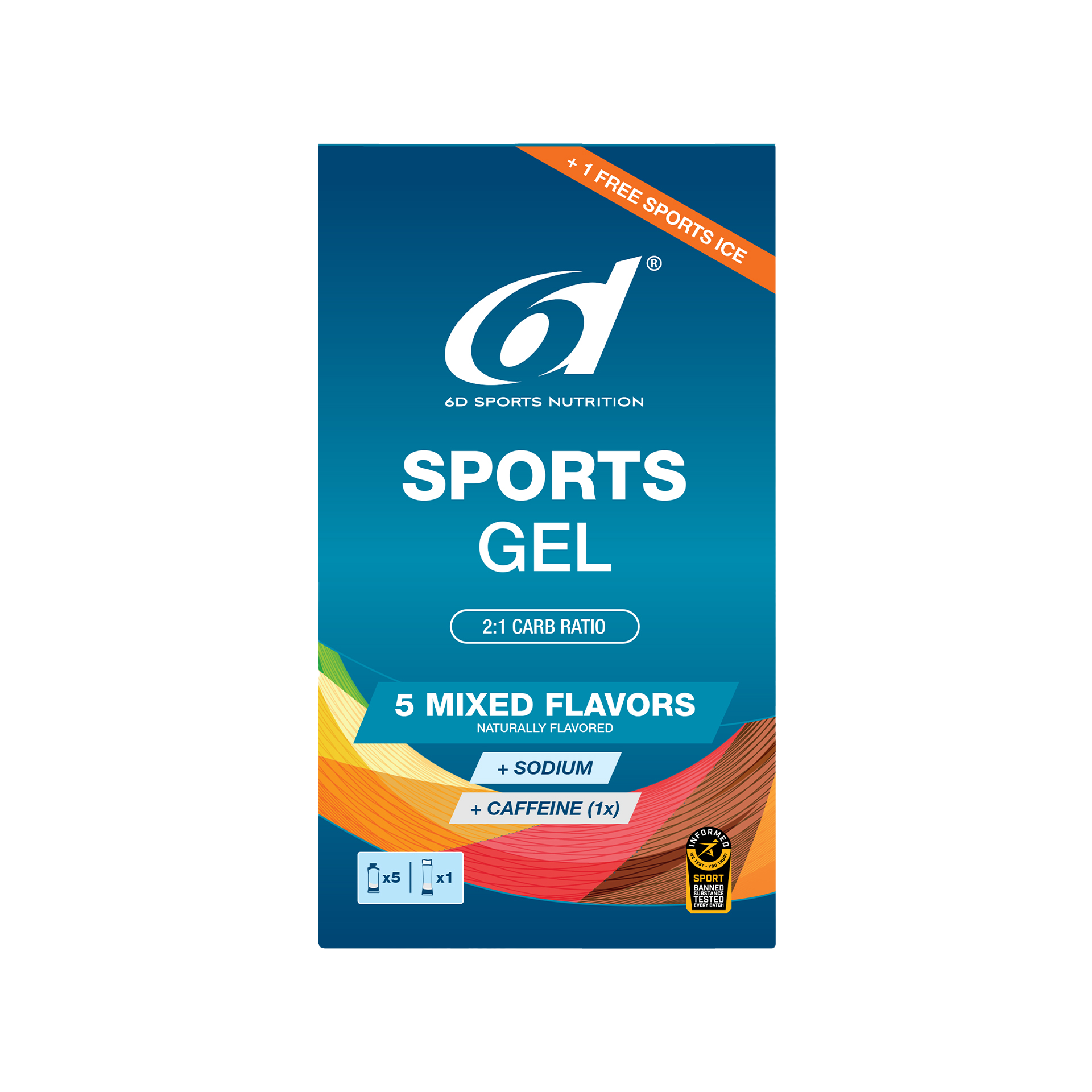 - Inhoud: 5 gels + 1 gratis 6d Sports Ice Orange